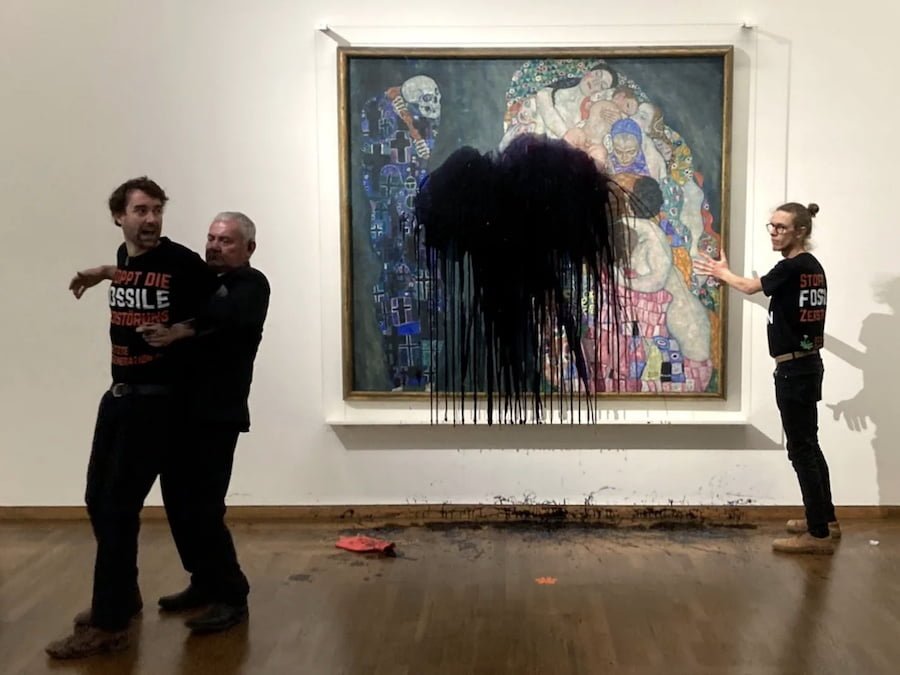 מצד שני, בחודשים האחרונים אנחנו עדים לשימוש באמנות כדי למשוך תשומת לב לבעיות אקלימיות. אקטיביסטים סביבתיים שמבינים היטב את הערך של יצירות מופת, בוחרים יצירות חשובות במוזיאונים ושופכים עליהם נוזלים – החל במרק עגבניות, פירה ולאחונה, מחאה זו עלתה מדרגה, כאשר שפכו נוזל שומני שחור על יצירה של קלימט במוזיאון לאופולד בוינה. אמנם האקטיביסטים מקפידים (עד כה) לבחור יצירות המוגנות בזכוכית אבל הנוזלים עלולים לחלחל ליצירה בחלקה התחתון.
