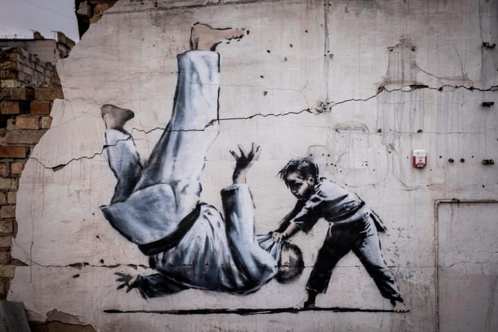 בנקסי, אמן הרחוב הבריטי, השומר בקנאות על האנונימיות שלו, הוא אמן המחאה האולטימטיבי. הוא מצליח להגיע למחוזות קונפליקט (גם אלינו הגיע) ולהשאיר אחריו דימויים נוקבים. השבוע הוא הותיר את חותמו באוקראינה, בשבע יצירות חדשות, הראשונות שיצר מאז קיץ 2021. הוא אפילו לא התייחס למותה של המלכה אליזבת׳, למרות שהירבה להציג את דמותה במהלך הקריירה שלו.