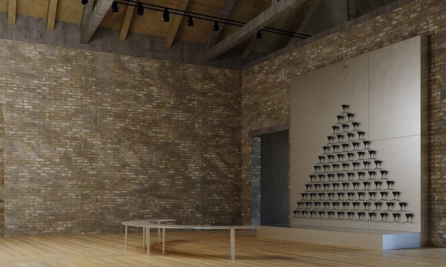 הצוות של הביתן האוקראיני, לעומת זאת, נכנס מיד לפעולה. אחת האוצרות של הביתן העמיסה את החלקים של היצירה המרכזית של האמן פבלו מקוב על הרכב שלה, יחד עם בן זוגה והכלב. הם יצאו למסע מלא תלאות שנמשך שלושה שבועות, ובסופו הם הגיעו לוונציה. היצירה, מזרקת התשישות, הוקמה בעזרתם של צוותים מקומיים. היצירה נקראת "מעיין התשישות” והיא כוללת 78 משפכי ברונזה,. היצירה מאורגנת בצורת משולש, שדרכו מים מטפטפים ובכל שלב הזרם הופף חלש יותר עד שהוא הופך בסוף לטפטוף. הכוונה היא מטאפורה ל"תשישות האנושות ומיצוי הדמוקרטיה.