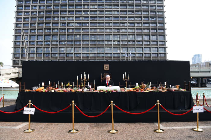 איתי זלאייט הוא אחד ה״כוכבים״ של הגל החדש של אמנות מחאה, זו שנעשית עם הפנים לתקשורת ולרשתות החברתיות. רק בשבוע שעבר הזכרתי את הפסל המוזהב של ביבי שהציב בכיכר רבין ב– 2016, אפרופו איך למשוך תשומת לב בעולם האמנות. הפעם הוא קיבל אישור מהעיריה והקים את מיצב ״הסעודה האחרונה״ למשך יום אחד בכיכר רבין, ובו שולחן משתה ארוך מלא כל טוב ופסל בדמותו של נתניהו יושב לבד ואוכל מעוגה שעליה מצוייר דגל ישראל. לא במקרה המיצב הוקם בערב תשעה בערב, המסמל את חורבן בית שני. בשיחה עם זלאייט הוא מסביר: ״ ביבי נתפש על ידי תומכיו כמושיע, כדומיננטי וחזק. כך הצגתי אותו. אלא שאז המציאות מגיעה והוא סועד לבד בלי השליחים שלו, שבמקרה זה אמורים להיות שליחי הציבור אבל הם נעלמו. חלק חשוב בסיפור של ישו הוא שהסנהדרין שפט אותו. אצלינו לא צולבים אבל אפשר לשפוט. אנחנו נמצאים בצומת שבו יש שתי אפשרויות: שביבי יישפט באופן דמוקרטי ויסולק ואז זו תהיה הסעודה האחרונה של ביבי, או שזאת תהיה הסעודה האחרונה של הדמוקרטיה שביבי כבר כירסם והנה עכשיו הוא כבר בקינוח״.