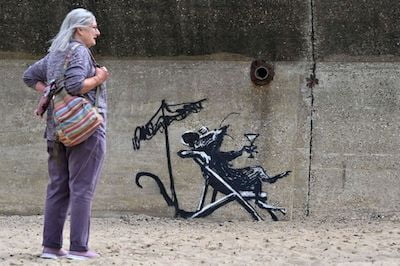 הדימוי בתמונה לעילכבר הושחת. העבודה צויירה על חוף הים של העיר Lowestoft. בנקסי צייר את אחד הנושאים החביבים עליו – עכברוש (הוא כתב לא פעם על כך שהעכברושים יכבשו את העולם ושהוא מזדהה איתם בגלל שהם שנואים) שיושב על כסא נוח ושותה קוקטייל. העבודה כבר הושחתה לגמרי והרשויות מנסות לבדוק האם ניתן לתקן את הנזק – סביר שלא – ונראה על פני השנים, שבנקסי לגמרי לוקח בחשבון את האפשרות שדקה אחרי שהוא מסיים את עבודתו – היא תושחת. זה אופיו של המרחב הציבורי והתחרות בין אמני הרחוב. (אני מדברת על כך בהרחבה בהרצאה שלי המוקדשת לבנקסי).