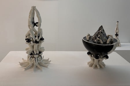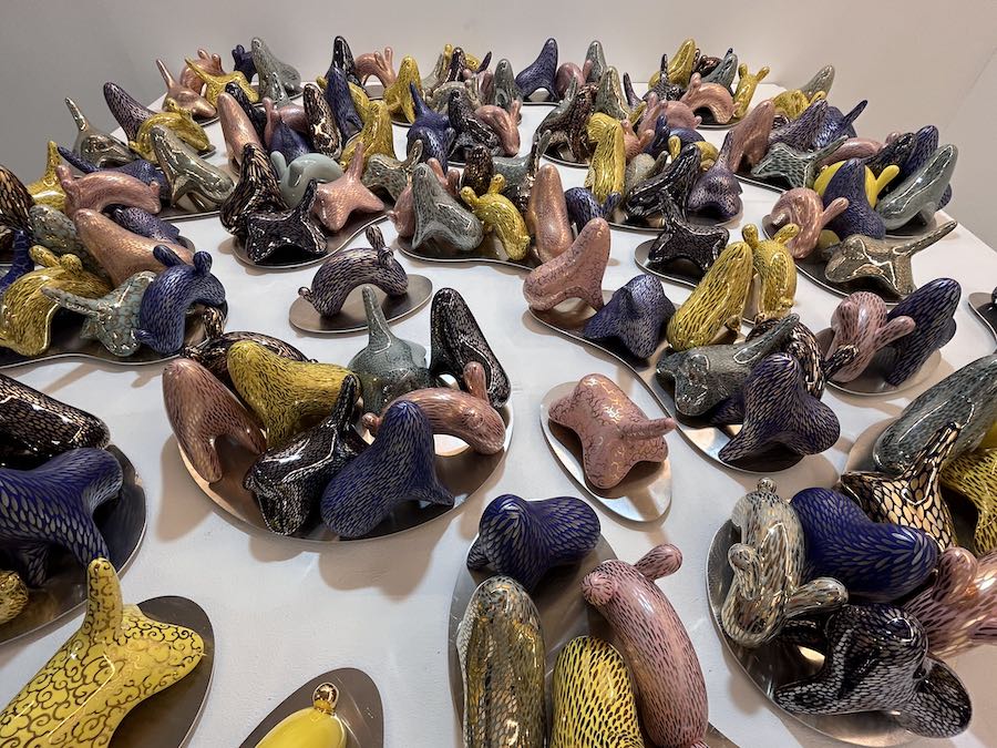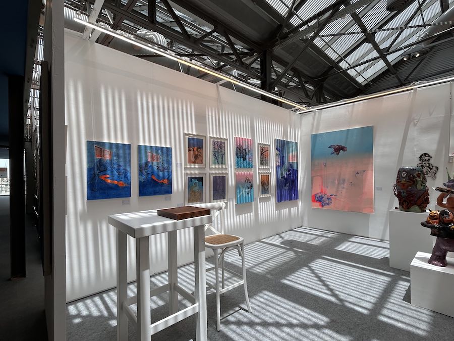 מטבעו, יריד הוא מאד אקלקטי אבל באופן כללי, ניתן ללמוד ממנו על רוח התקופה, על מה מעסיק את האמנים (ואת המעצבים) המשתתפים בו. אתחיל ואומר שבניגוד לשנים קודמות, עיצוב טרי הוא חלש. המציגים חוזרים על עצמם וזה קצת שיעמם אותי. שמעתי תגובות דומות גם ממבקרים נוספים. האמנות, לעומת זאת, חזקה השנה. הציור שולט השנה בחממת האמנים העצמאיים וגם בגלריות. יחד עם זאת, רואים כמה טרנדים נוספים כמו טקסטיל – ריקמה בעיקר, וגם קרמיקה וזכוכית שחדרו ממתחם העיצוב גם לתוך מתחם האמנות. אני כותבת לא מעט על טשטוש הגבולות בין התחומים השונים אבל באירוע כזה, הייתי שמה את הקרמיקאי המוכשר אוריאל כספי במתחם העיצוב. הקרמיקאית מעיין בן יונה מופיעה גם באמנות (פרוייקט עם עדי גרשון) וגם בעיצוב. זה קצת משונה.