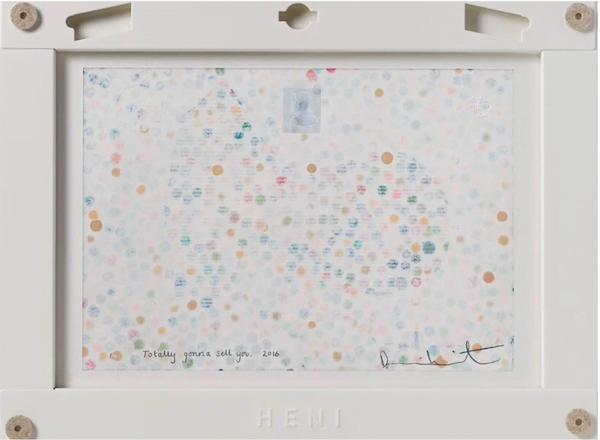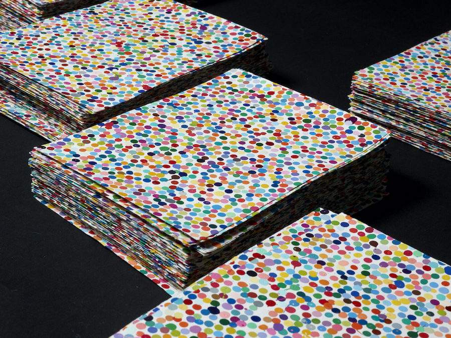 מדובר בניסוי של דמיאן הירסט שפורסם באוגוסט 2021 ועליו כתבתי בזמנו בפוסט על NFT’s. האסיסטנטים של האמן יצרו סדרה של 10,000 ציורים של נקודות על ניירות בגודל A4. העבודה נמשכה חמש שנים אבל כל עבודה היא ייחודית, ממוספרת, יש לה שם ייחודי, הולוגרמה וצ׳יפ מתוחכם, שמוכיח את האותנטיות של היצירה. אם זה מזכיר לכם שטרות של כסף, זה לא במקרה ולראייה, שם הסדרה – Currency – שפירושו כסף או מטבע. הירסט עצמו מדבר על כך שבבסיס של כסף יש אמונה – הרי בסופו של דבר מדובר בחתיכת נייר (או פלסטיק, בימינו), שמה שנותן לו ערך זה האמונה שלנו במטבע הזה.